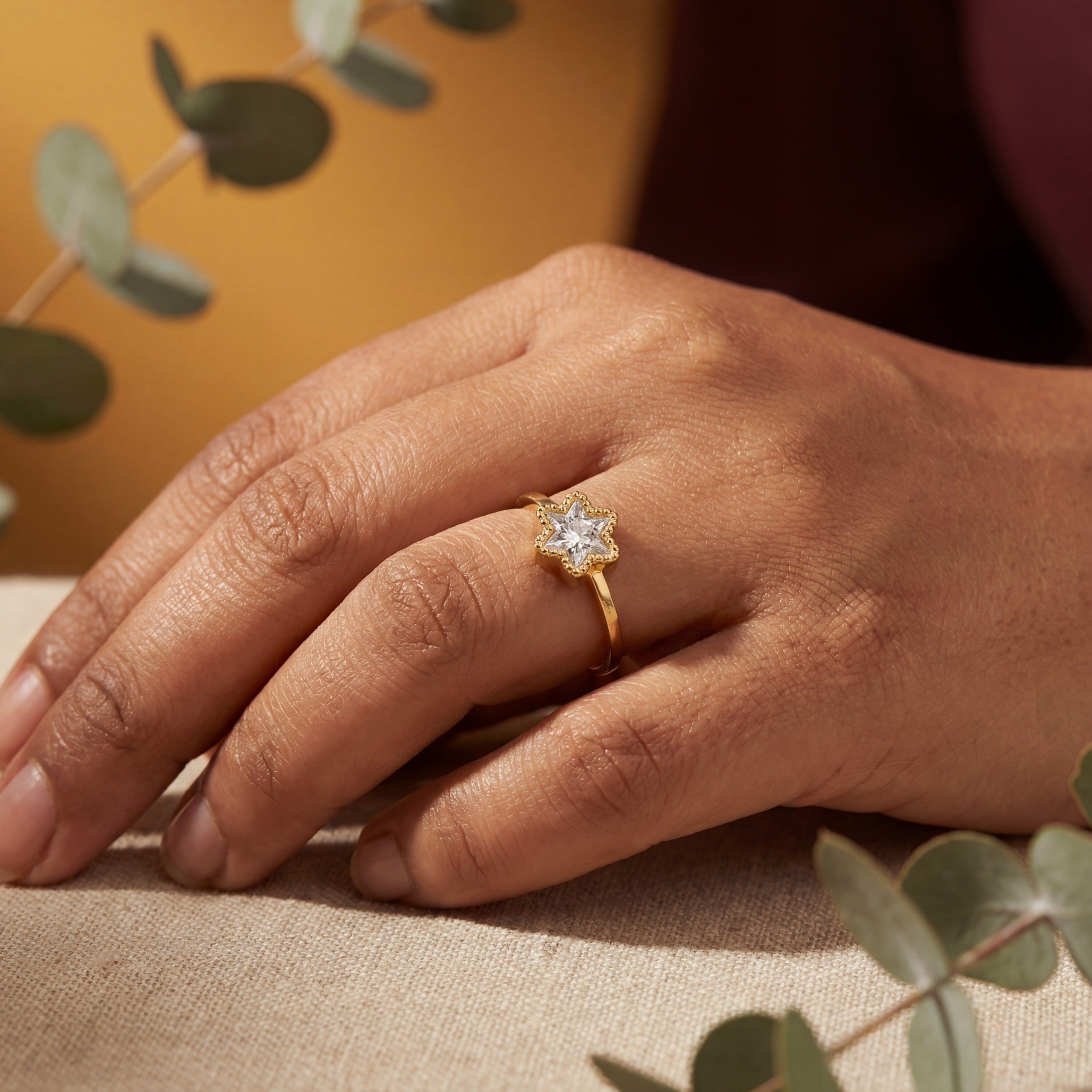 Gold Plated CZ Star Solitaire Ring – Anti-Tarnish Stainless Steel | House of Viya